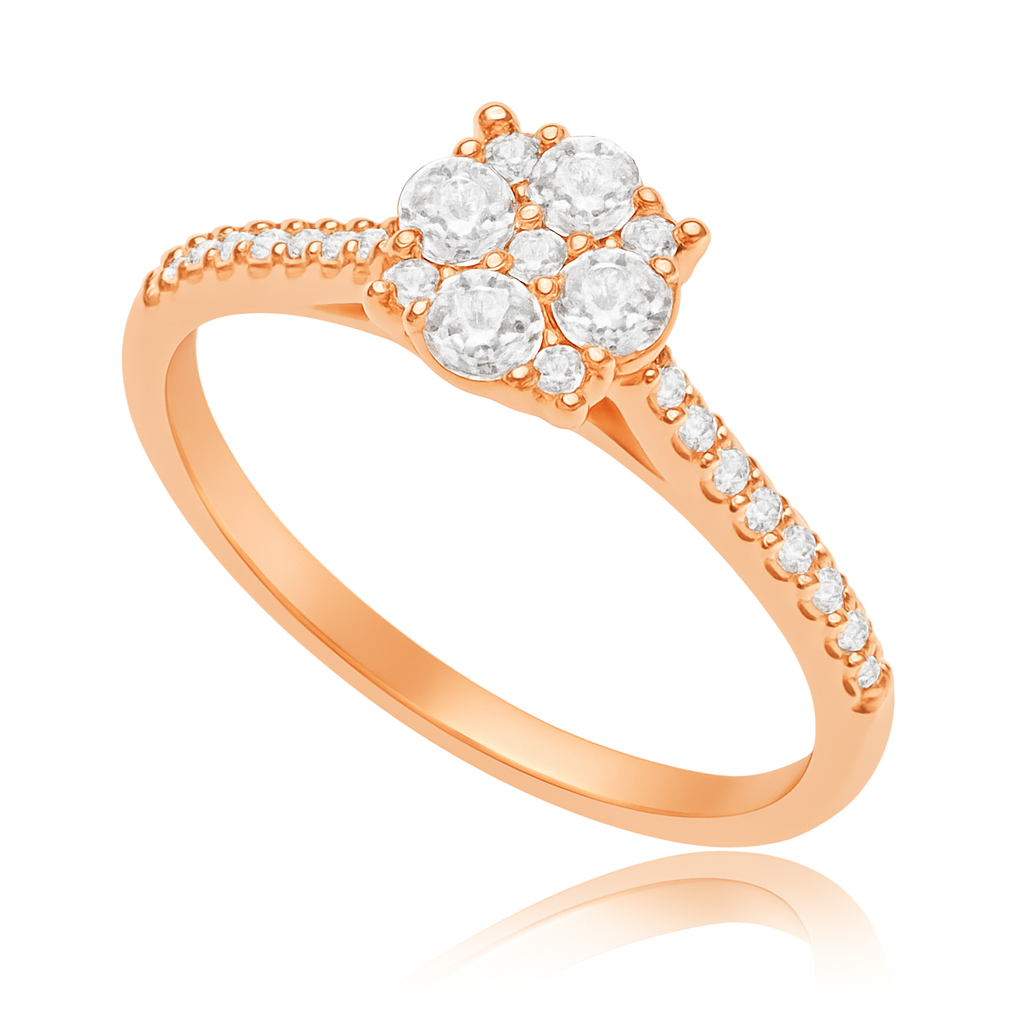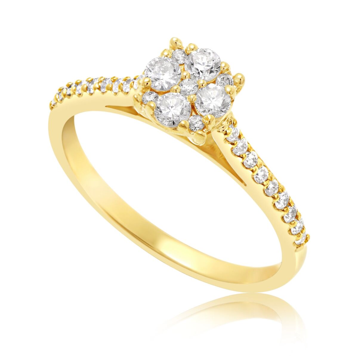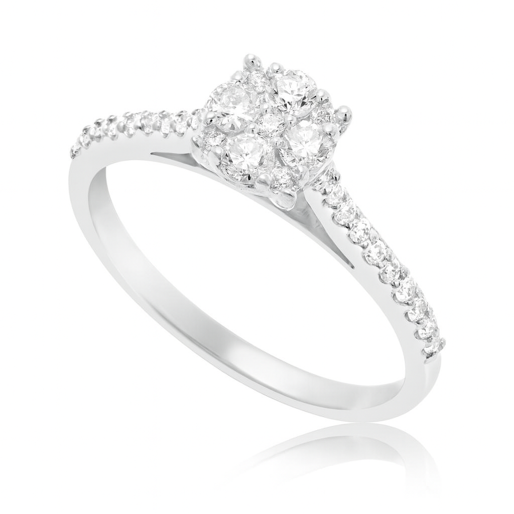 טבעת אלגנטית ונוצצת משובצת ביהלומים טבעיים עגולים ובמרכזה ארבעה יהלומים גדולים יותר. טבעת יוקרתית זו הינו המתנה המושלמת לכל אישה ולכל אירוע!!