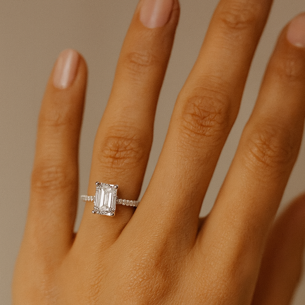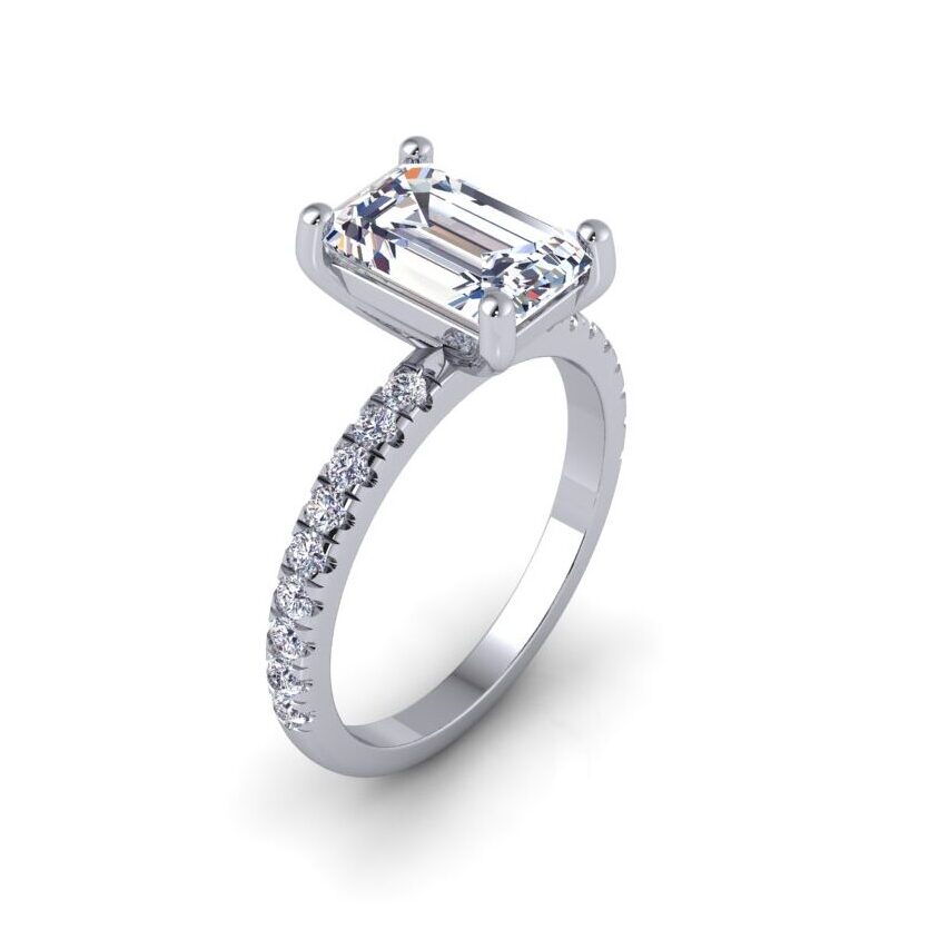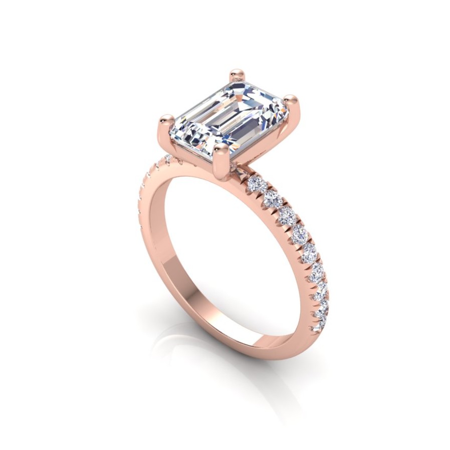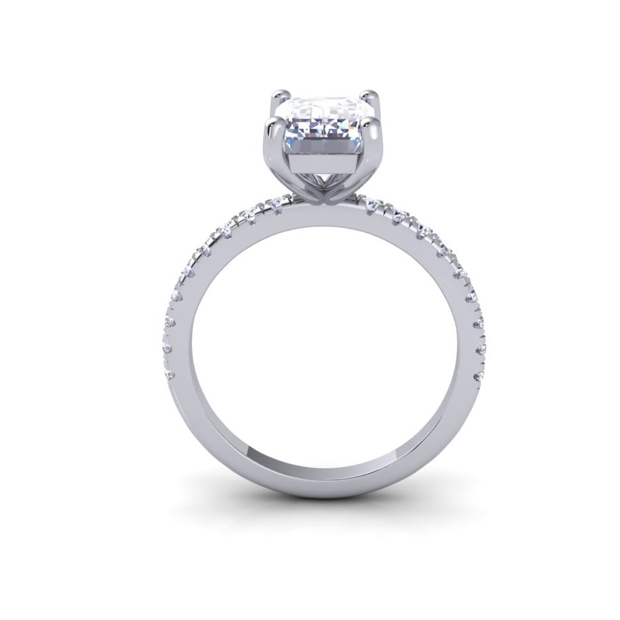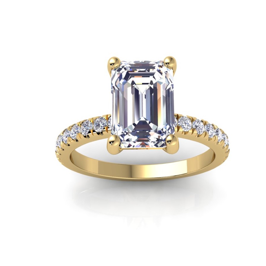 טבעת אירוסין עם יהלום מרכזי בחיתוך "רדיאן" ואבני צד עגולים.