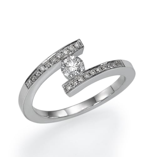 טבעת אירוסין בעיצוב "טוויסט" משובצת יהלום מרכזי מנצנץ ויהלומי צד.