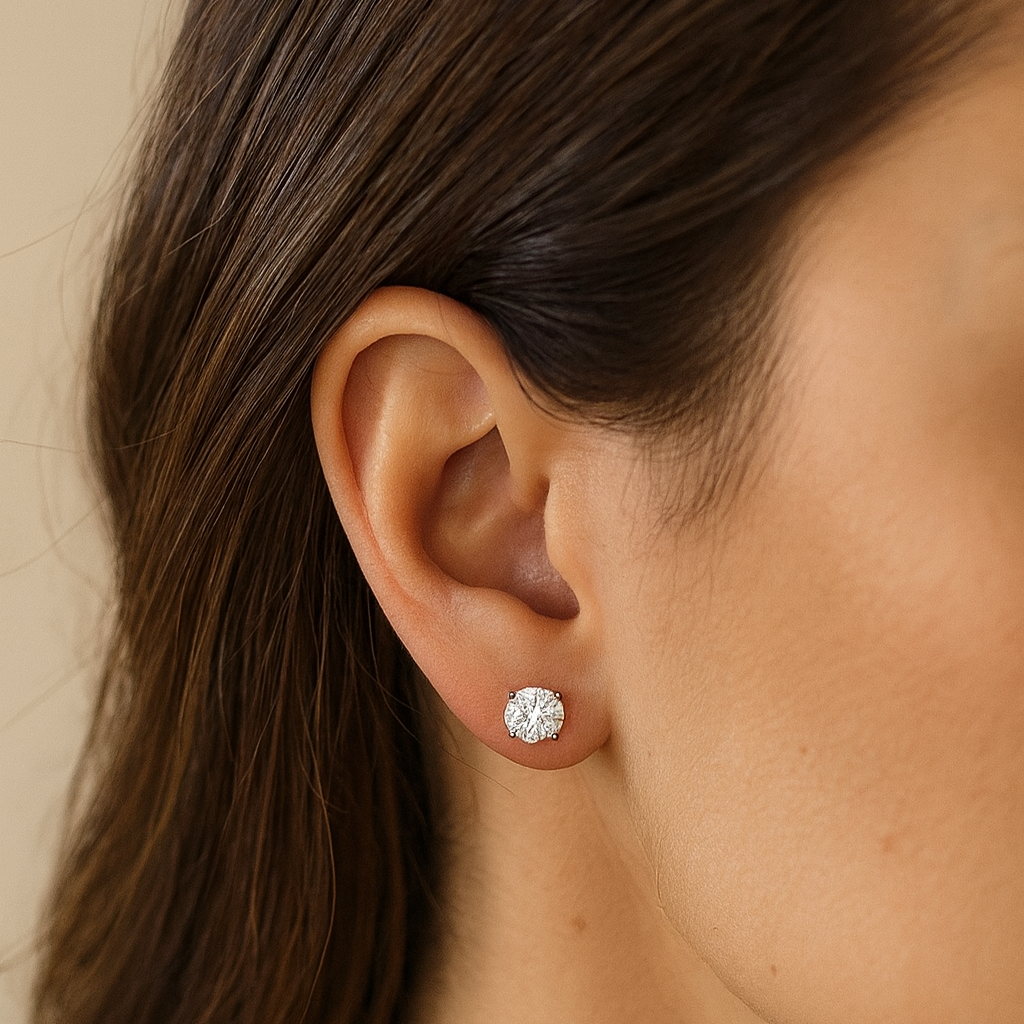 זוג עגיל יהלומים טבעיים במשקל כולל 1.01 קראט.