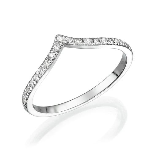 טבעת "v" מעוצבת, משובצת יהלומים מנצנצים ואיכותיים.
