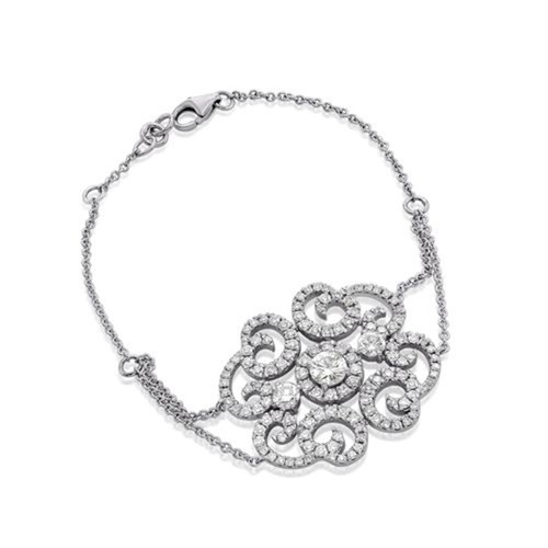 זהו צמיד אלגנטי העשיר בעיטורים עם יהלום עגול מרכזי. צמיד מהמם על היד.