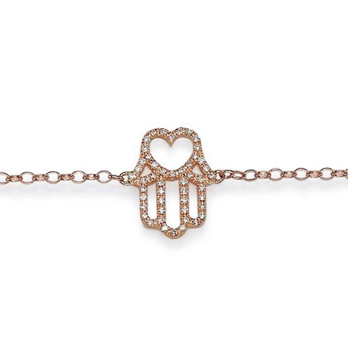 צמיד עדין עם תליון בצורת חמסה משובצת ביהלומים קטנים. בחלק העליון של החמסה יש פתח בצורת לב, מה שמוסיף אלמנט עיצובי ייחודי.