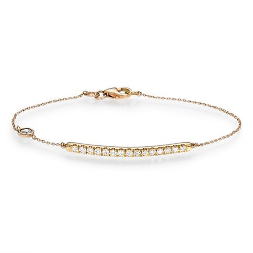 במרכז הצמיד, המשובץ בשורה של יהלומים קטנים, המעניקים לו מראה יוקרתי ועדין. ניתן להבחין באבן נוספת קטנה המשובצת על השרשרת בצד אחד, קרוב לסוגר.