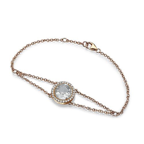 צמיד עם יהלום מרכזי סביבו משובצים יהלומים ושרשרת דקה .