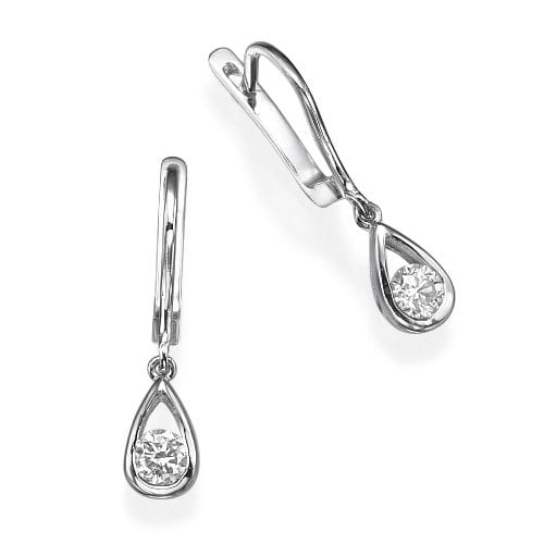 עגילי יהלומים תלויים בעיצוב טיפה, משובצים יהלומים עגולים איכותיים למראה יוקרתי.