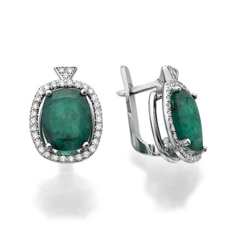 עגילים יוקרתיים בעיצוב אישי, משובצים יהלומים ואבני חן “אמרלד” בחיתוך "קושן".