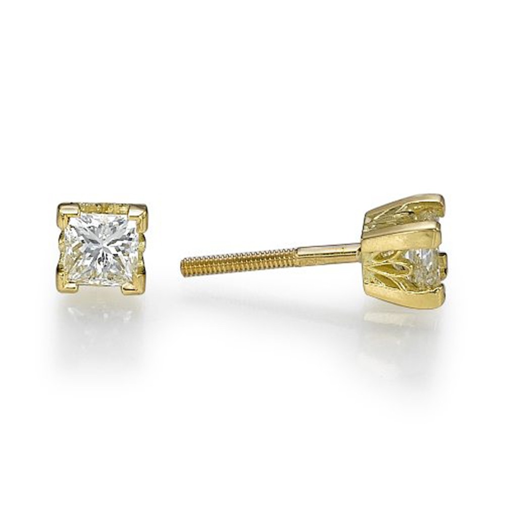 עגילים מרשימים משובצים ביהלום מרכזי בחיתוך “פרינסס” מרובע.