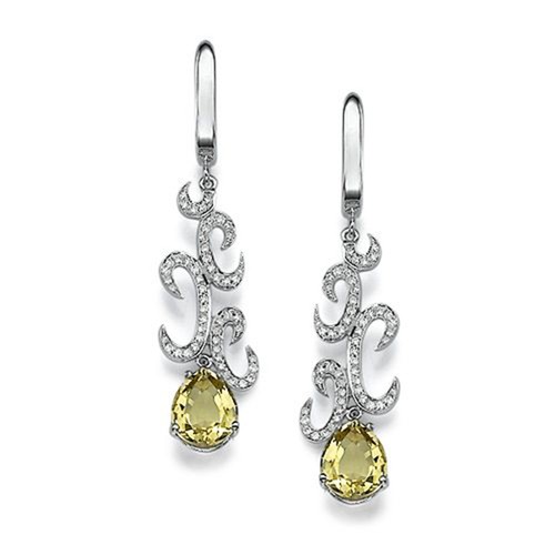 עגילי יהלומים יוקרתיים, משובצים יהלומים ואבני חן למון קוורץ.