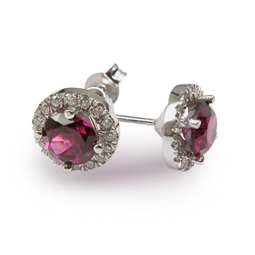 עגילים צמודי אוזן, משובצים אבני חן רובי, ויהלומים לבנים מסביב.