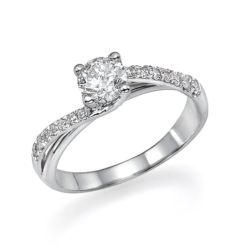 טבעת עם יהלום מרכזי ויהלומי צד המשובצות ביהלומים קטנים, עיצוב אלגנטי ויפה.