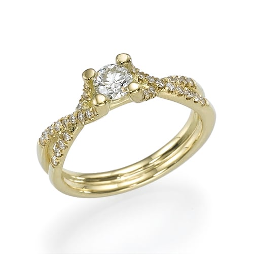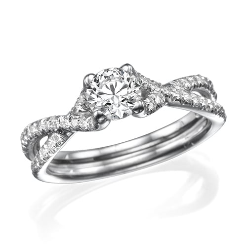 הטבעת מעוצבת בעיצוב מתפתל ואלגנטי, סט של שתי טבעות המשתלבות זו בזו. המסגרת מעוטרת ביהלומים קטנים המשובצים לאורכן.