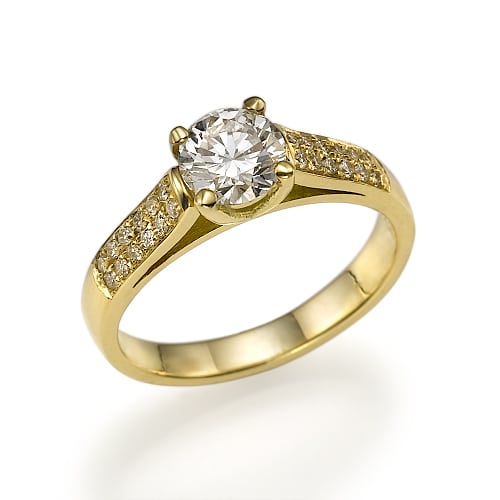 טבעת עם יהלום מרכזי ויהלומי צד קטנים. טבעת אלגנטית.