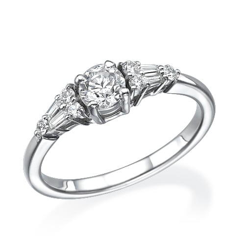 טבעת אלגנטית עם יהלום מרכזי ומשני צידי היהלום המרכזי יש "יהלומים מעוצבים" עם עיצוב קלאסי ונגיעות וינטג' עיצוב מדויק קלאסי ומרשים.