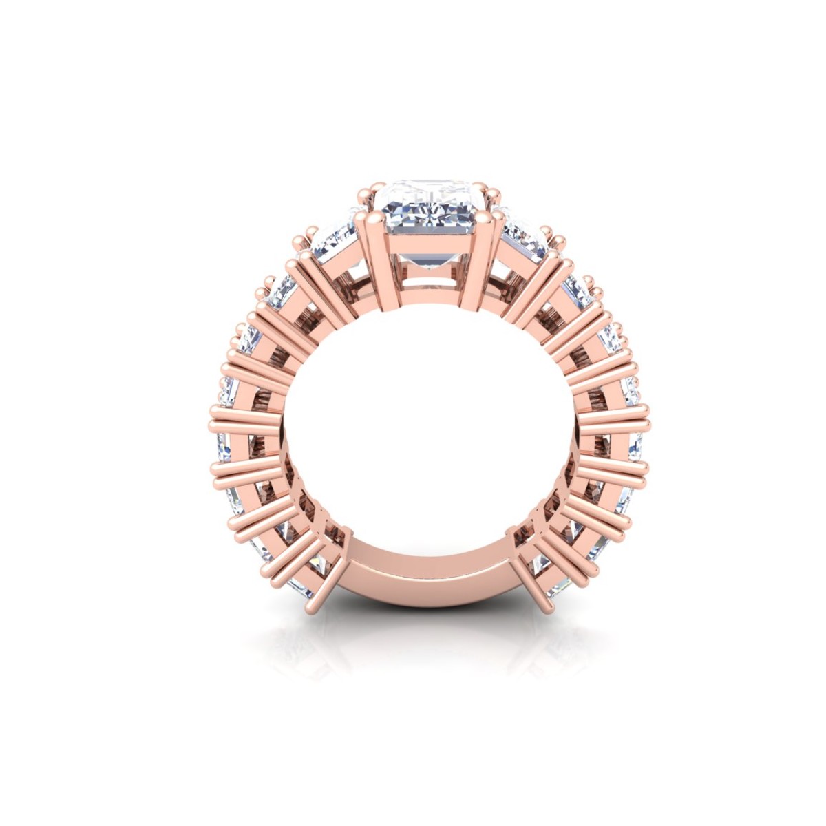 טבעת עם יהלום בחיתוך "רדיאן" ויהלומי צד בחיתוך "רדיאן".