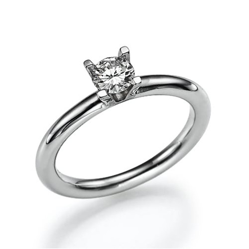 טבעת עם יהלום מרכזי קטן ומצדידו מראה מט קלאסי