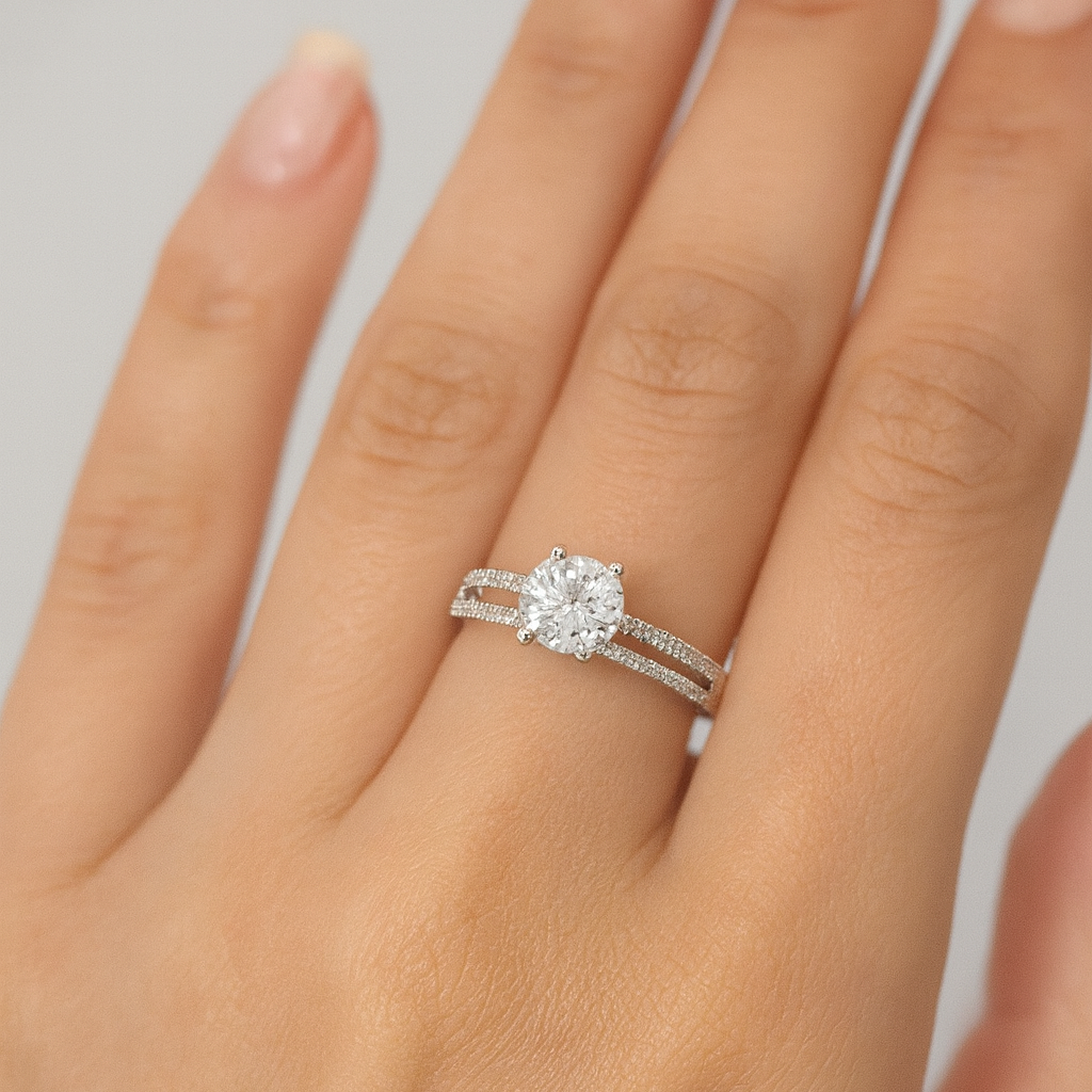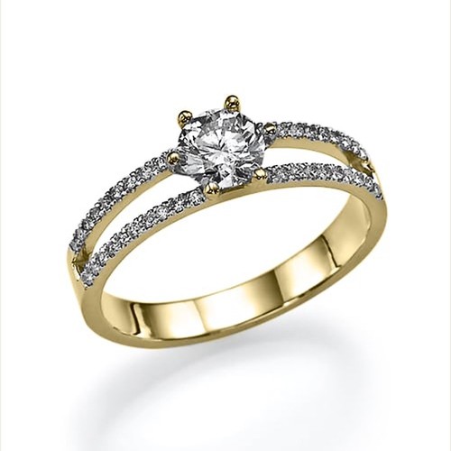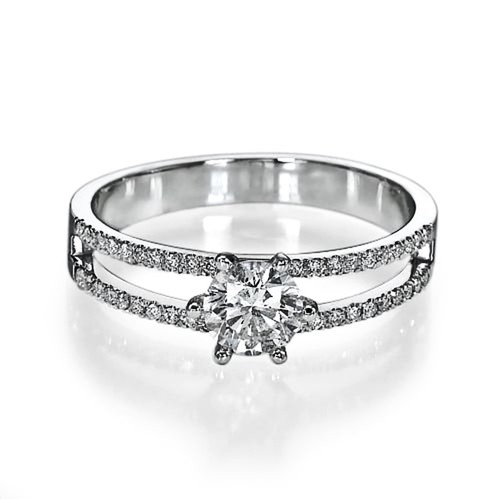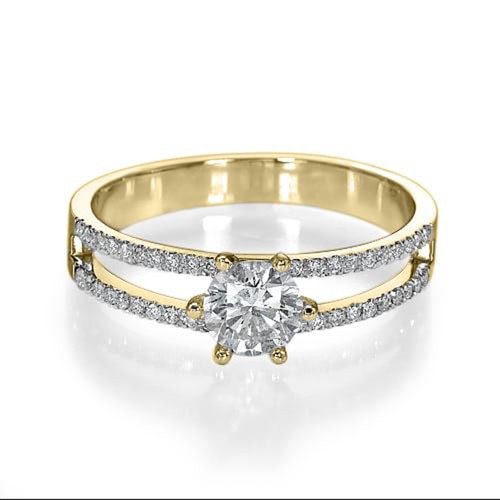 טבעת יהלום מרכזי עם יהלומי צד בעיצוב מיוחד מרשים ואלגנטי.
