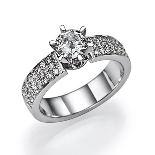 טבעת עם יהלום מרכזי ויהלומי צד רבים. אלגנטית ומרשימה.