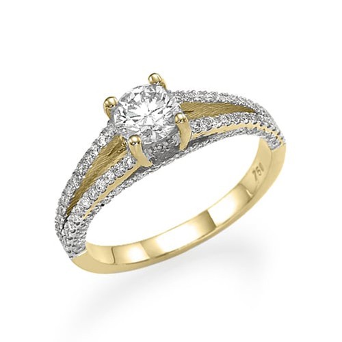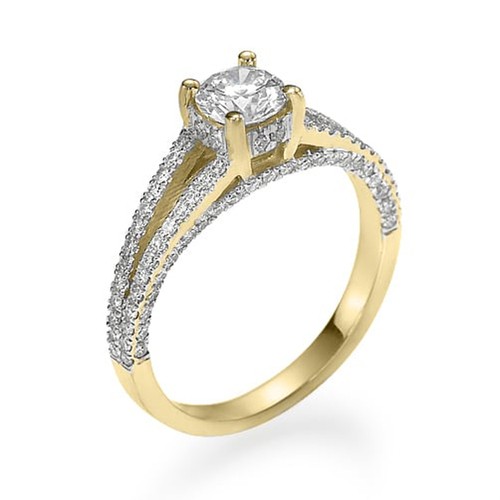 במרכז הטבעת משובץ יהלום, מסגרת הטבעת מתפצלת ומתעגלת בעדינות מעוטרת בשיבוץ של יהלומים קטנים, מה שמעניק לה מראה אלגנטי וזוהר במיוחד.