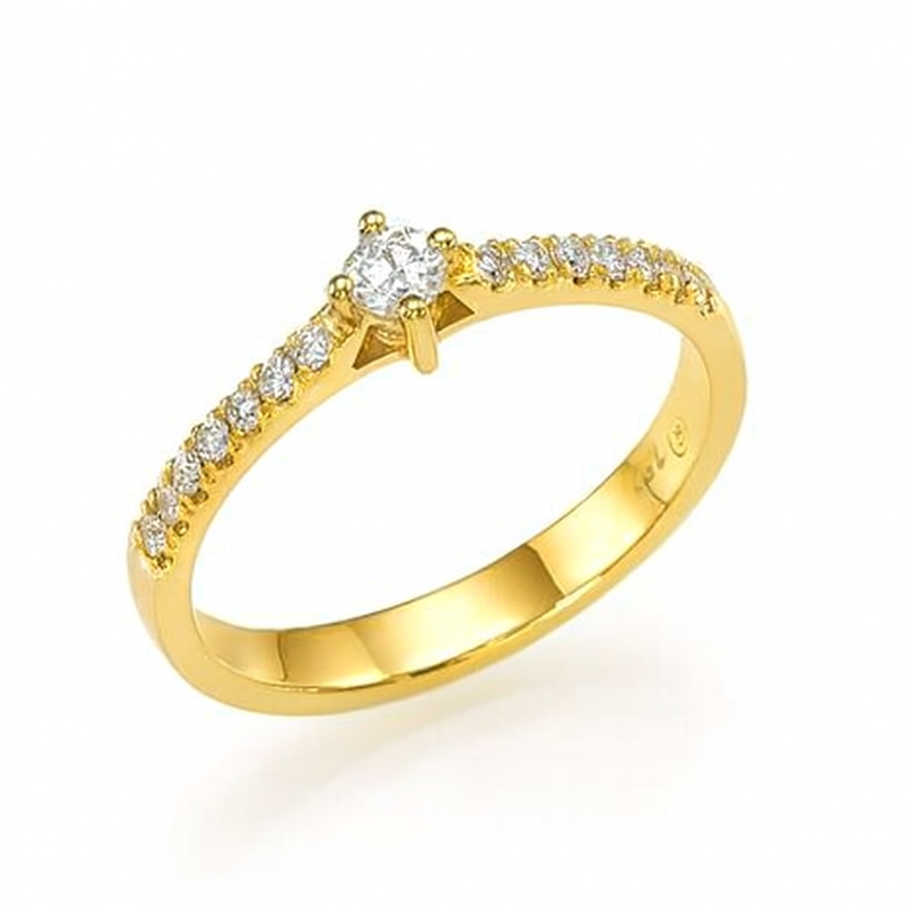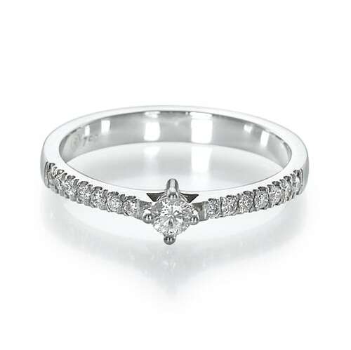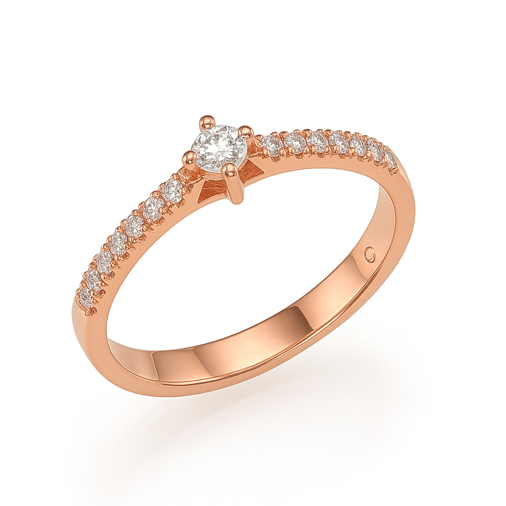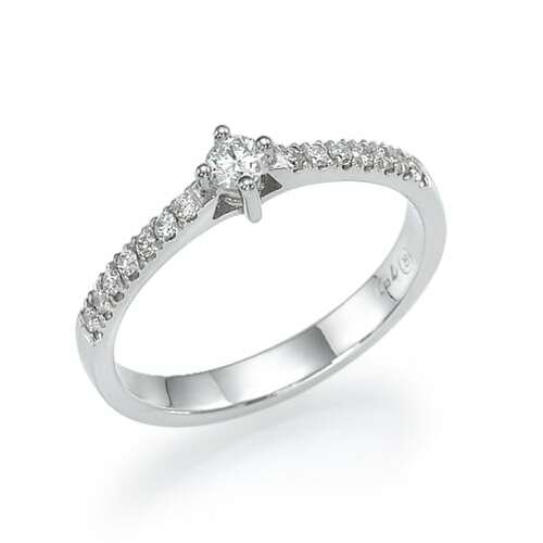 טבעת יהלום עדינה ואלגנטית עם יהלום מרכזי עגול. לאורך החלק העליון של הטבעת משובצים יהלומים קטנים שמוסיפים לה ברק ויוקרה.