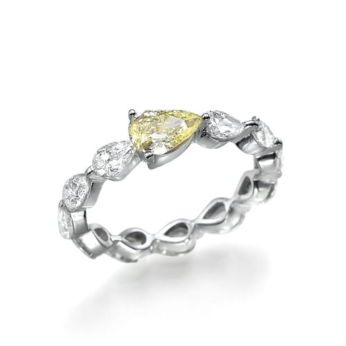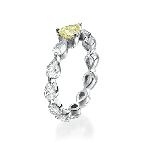 במרכז הטבעת בולט יהלום מיוחד בצבע צהוב בחיתוך "טיפה" , המוסיף נגיעה ייחודית של צבע ויוקרה.
