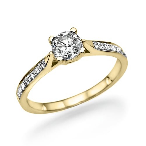 הטבעת עשויה מזהב צהוב, בעל גימור חלק ומבריק שמקנה לה מראה חמים ואלגנטי. במרכזה של הטבעת נמצא יהלום בצבע זהב לבן ומצידו אבני צד.