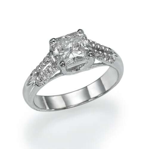טבעת עם יהלום מרכזי בחיתוך "אמרלד" ויהלומי צד. אלגנטית ומיוחדת .