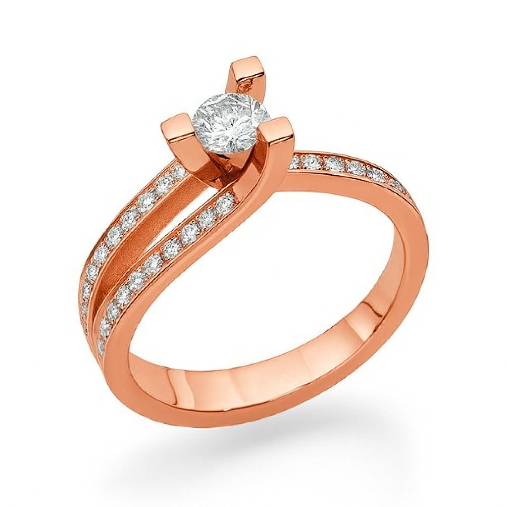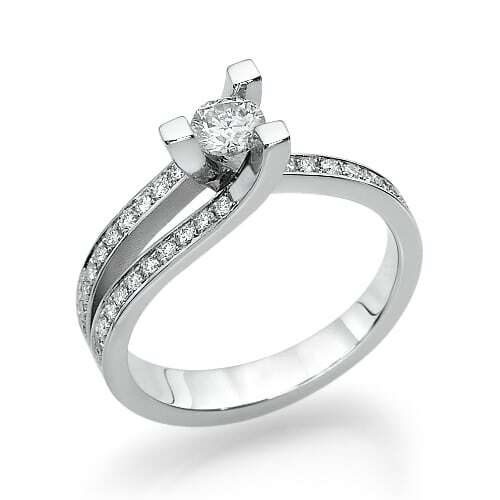 מסגרת הטבעת מפוצלת לשני חלקים, וכל אחד מהם משובץ בשורת יהלומים קטנים שמוסיפים ברק ויוקרה. השיבוץ המדויק והעיצוב האלגנטי יוצרים מראה מתוחכם ומודרני .