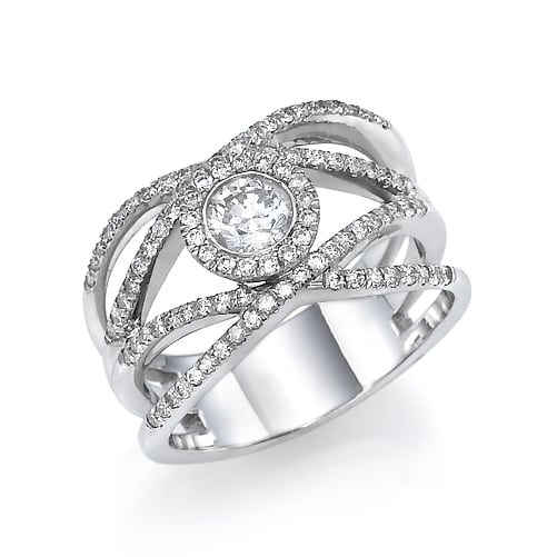 טבעת עם יהלום מרכזי עגול ויהלומים סביב היהלום.