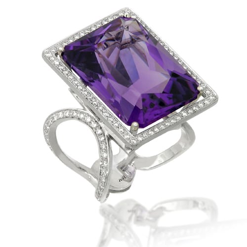 טבעת עם אבן חן סגולה ויהלומים במסגרת היהלום. ומצידה יש עיגול משובץ יהלומים. טבעת מיוחדת ואופנתית.