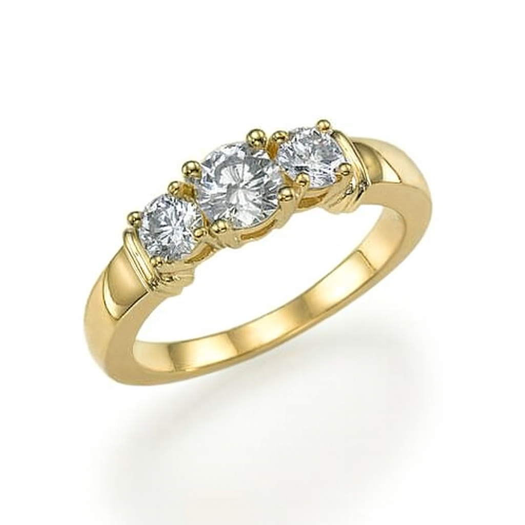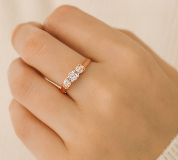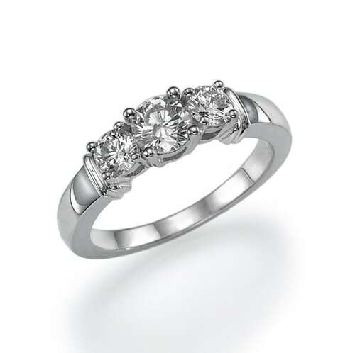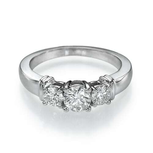 טבעת אירוסין עם שלושה יהלומים עגולים מרשימים ומדויקים.