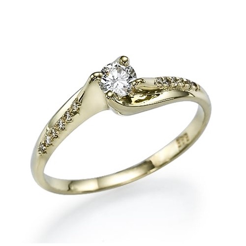 טבעת עם יהלום מרכזי עגול ויהלומי צד במסגרת.