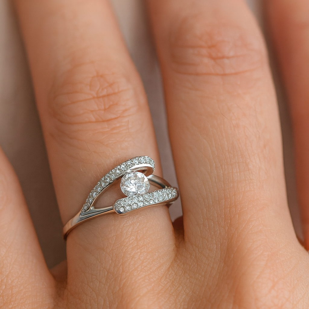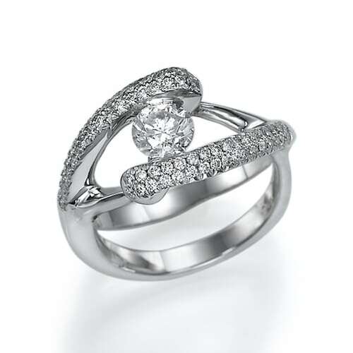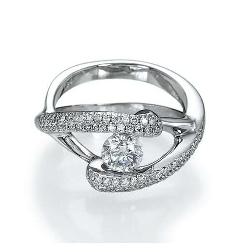 טבעת עם יהלום מרכזי עגול ויהלומי צד . מפותלת ומעוצבת מתאים למי שאוהבת טבעת עם נוכחות.