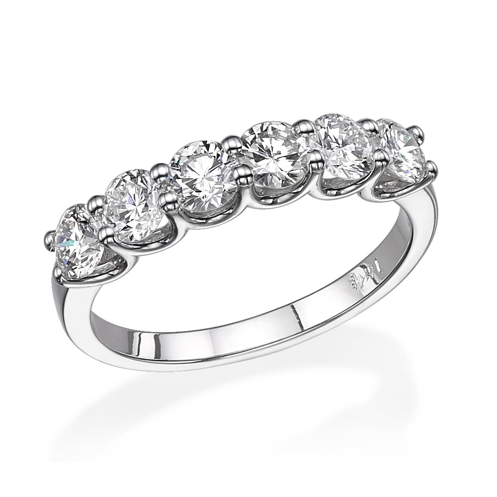 טבעת עם שישה יהלומים עגולים מסודרים.