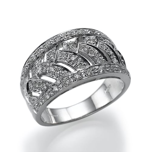 מבנה פתוח ומעוגל, עם דוגמא המזכירה עלים היוצרים דוגמא מעוגלת עם יהלומים רבים.
