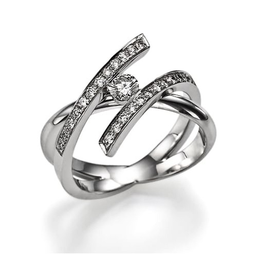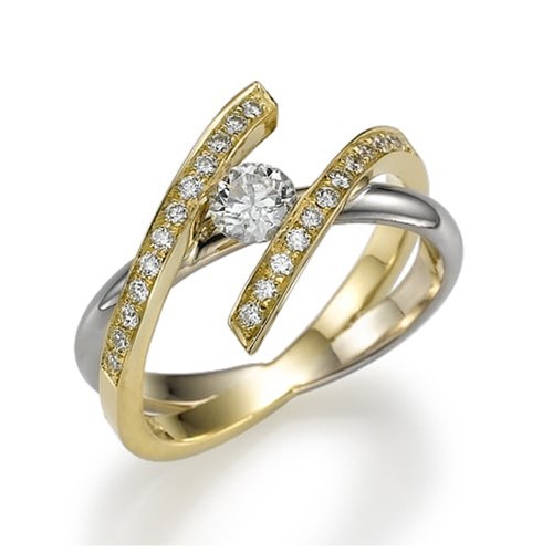 טבעת עם יהלום מרכזי עגול שממוקם בין המסגרת , מה שמעניק לטבעת מראה דינמי ואלגנטי.