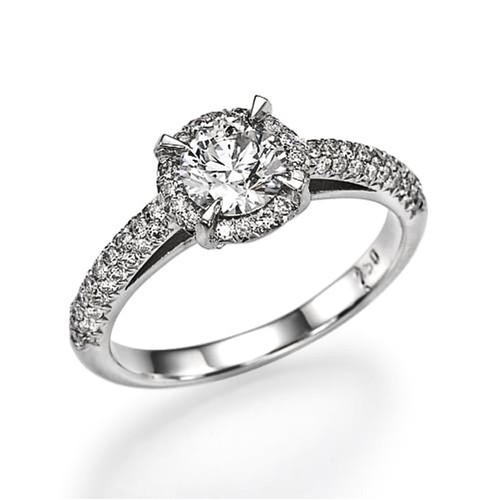 טבעת עם יהלום מרכזי עגול ומסביבו יהלומים קטנים ויהלומי צד. מראה מושלם ומרשים. טבעת זו מתאימה להצעת אירוסין.