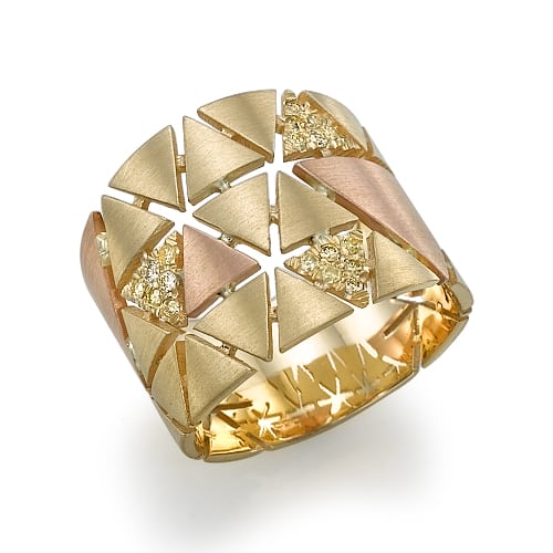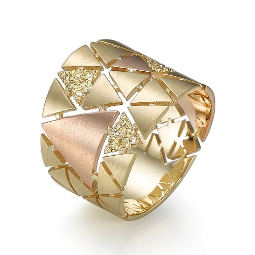 טבעת מעוצבת בתבנית של משולשים מנוגדים אחד לשני ,