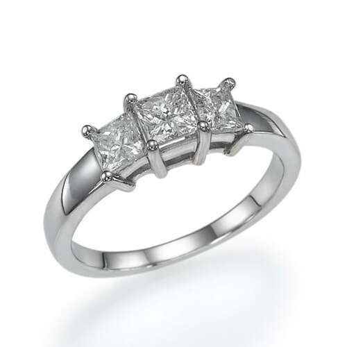 טבעת עם שלושה יהלומים בחיתוך פרינסס שצמודים אחד לשני ומסגרת מט. אלגנטית ומושלמת.