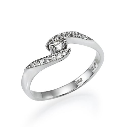 טבעת עם יהלום מרכזי ויהלומי צד עם טוויסט אלגנטי ומושלם.