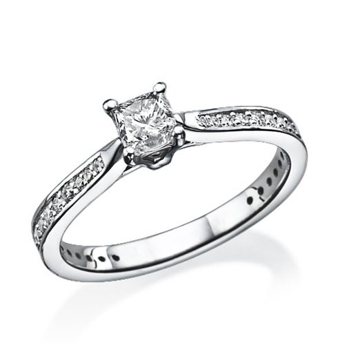 טבעת עם יהלום מרכזי בחיתוך "פרינסס" עם יהלומי צד. טבעת אלגנטית ומושלמת