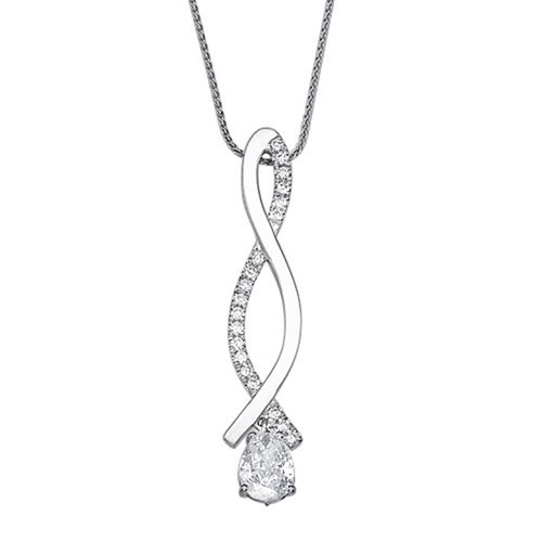 תליון עם רצועות דקות שמתפתלות. אחת מהרצועות משובצת ביהלומים. התליון תלוי על יהלום עגול