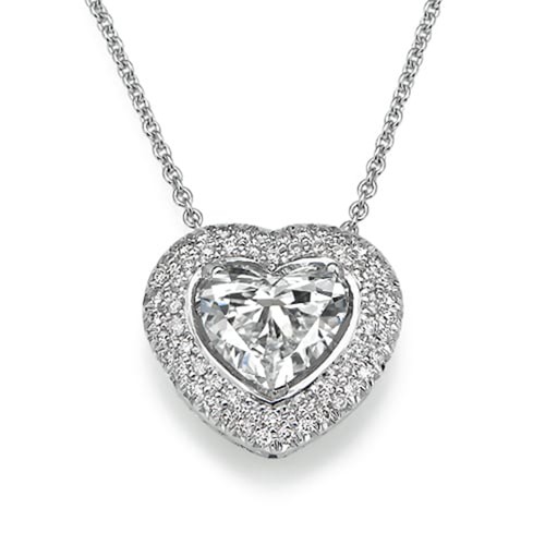 תליון בצורת לב, במרכזו משובץ יהלום . סביב היהלום יש מסגרת כפולה של יהלומים קטנים, שמוסיפים לתליון מראה יוקרתי ומרשים במיוחד.