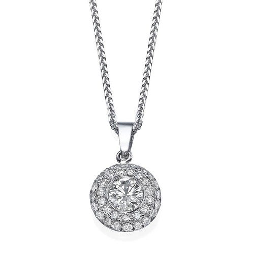 תליון יהלום עגול עם יהלומים משובצים. מתאים לאירועים ומושך תשומת לב.