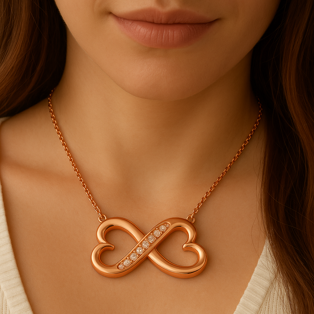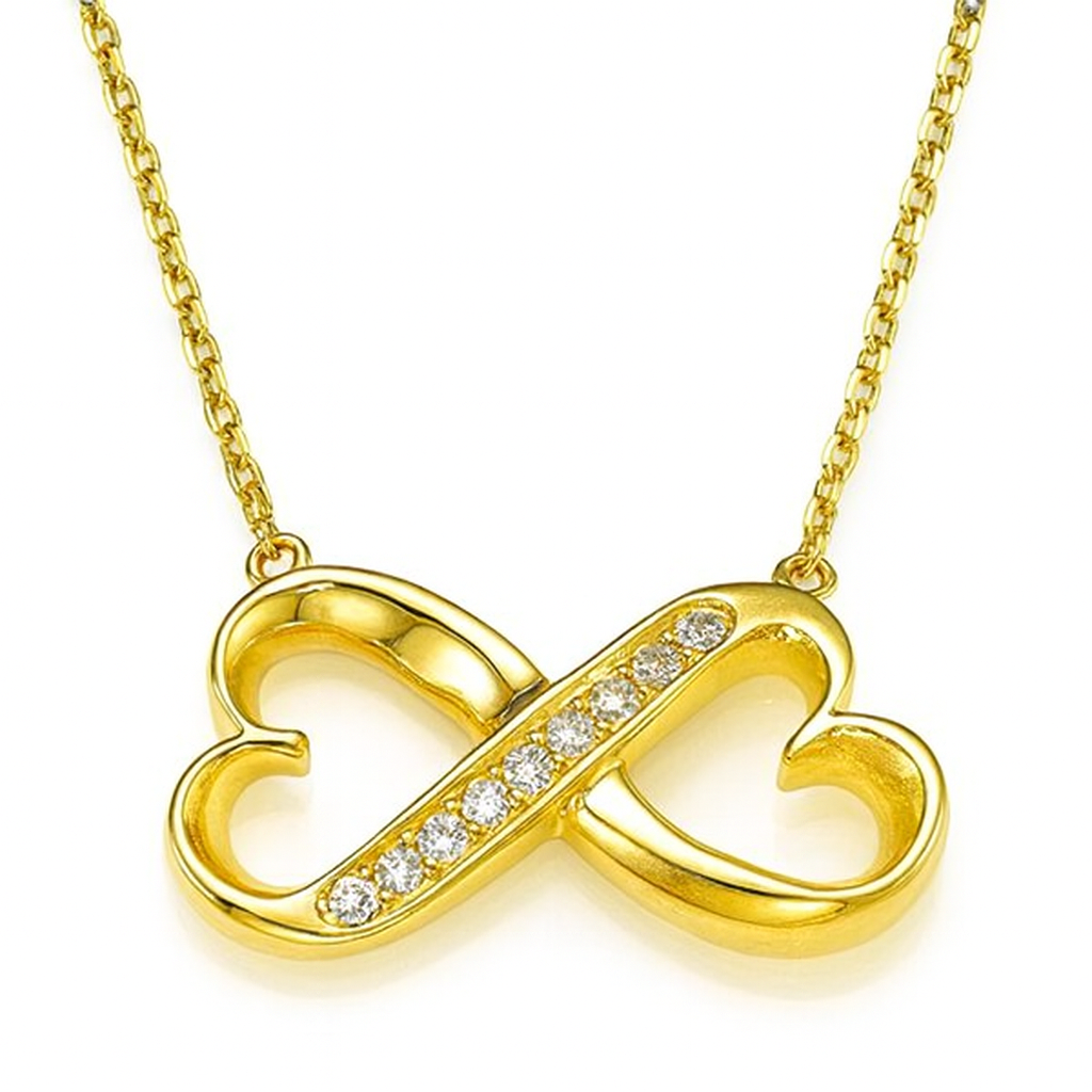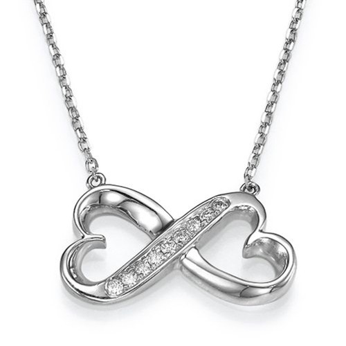 תליון "אינסוף" כל אחת מהלולאות בצורת לב מחוברות אחת לשנייה עם יהלומים משובצים באמצע.