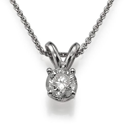 תליון עם יהלום עגול נתפס על ידי לולאה עבה. זהו תכשיט יוקרתי ועכשווי המתאים ליום יום ולכל אירוע.