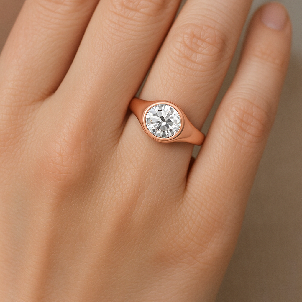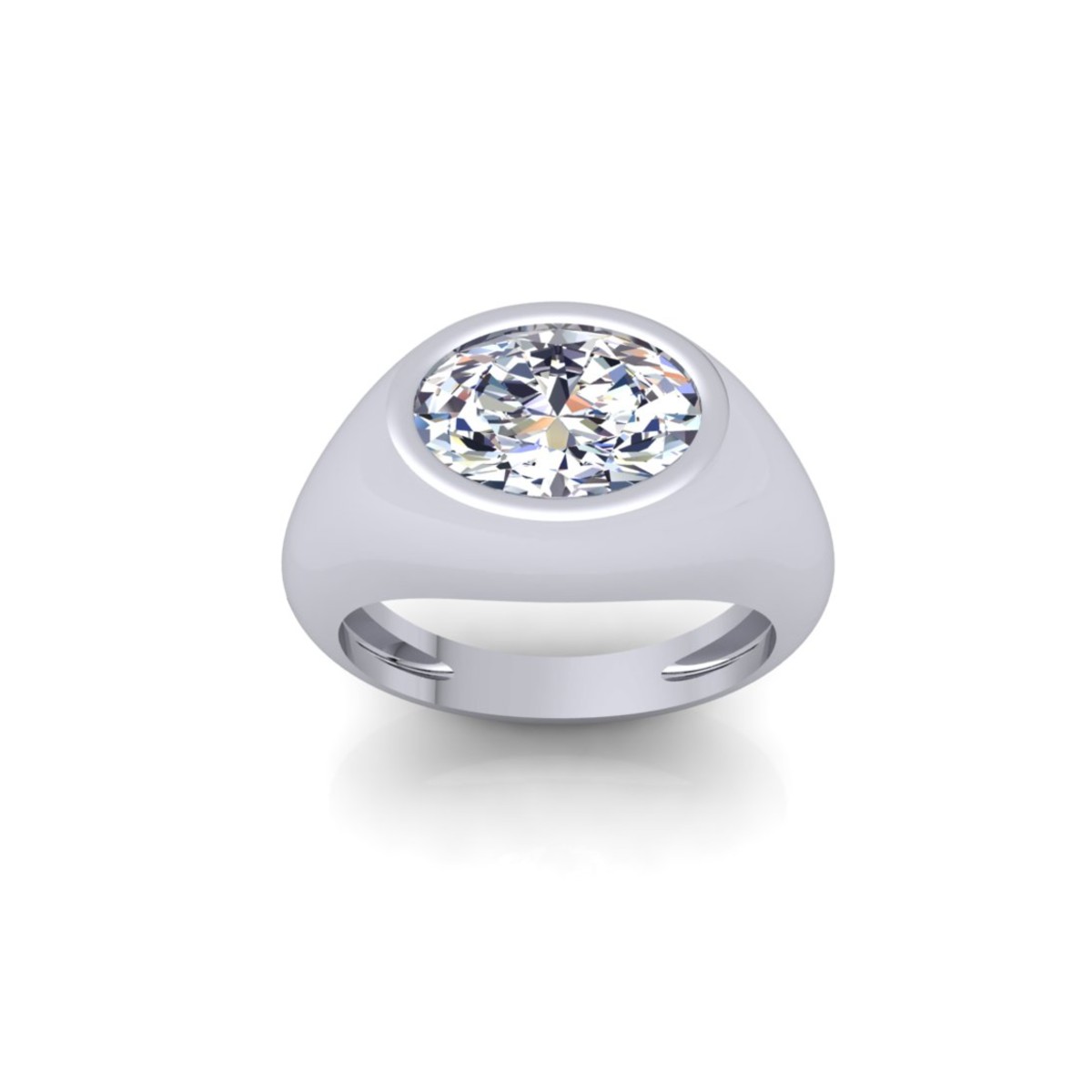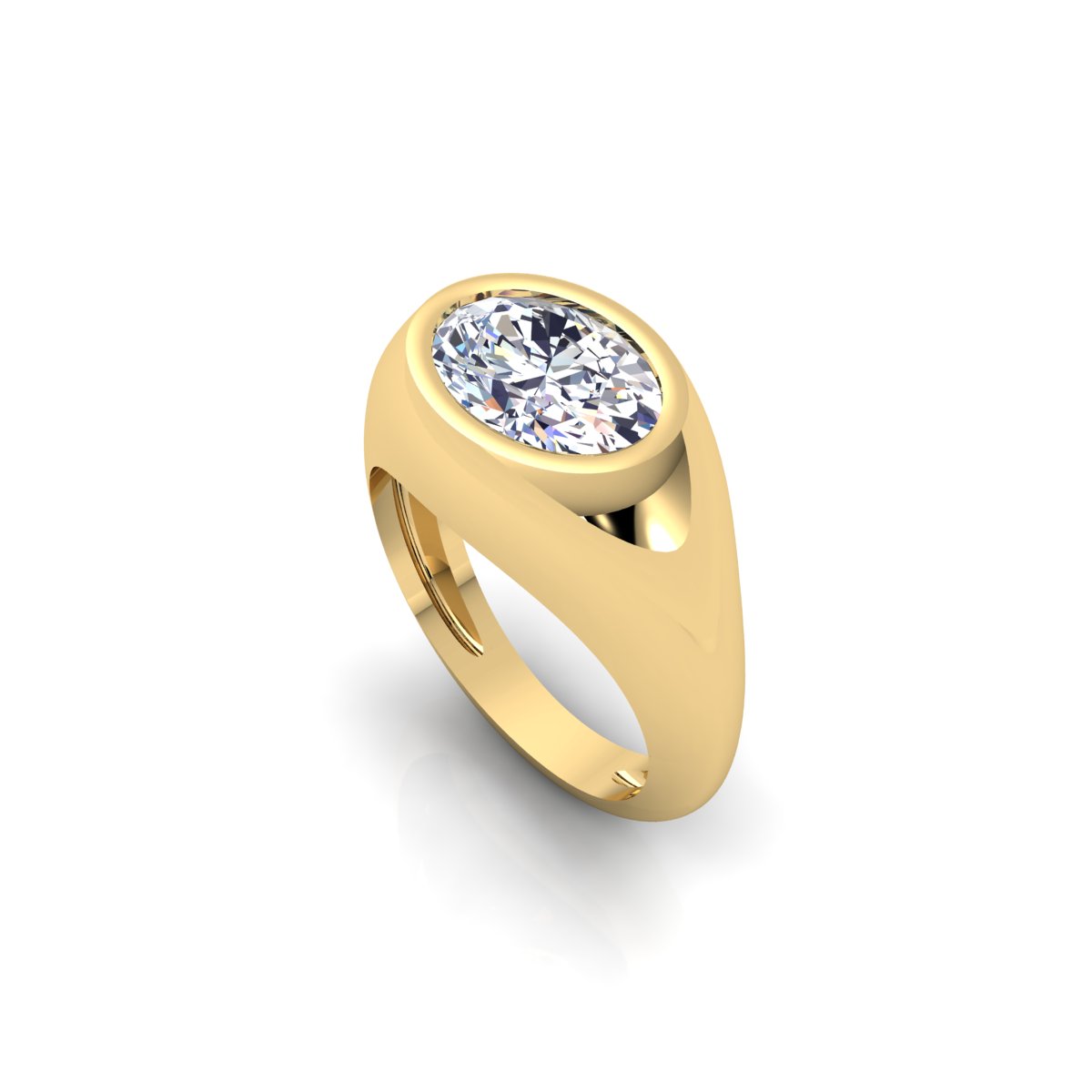 טבעת קלאסית עבה עם יהלום מרכזי עגול.