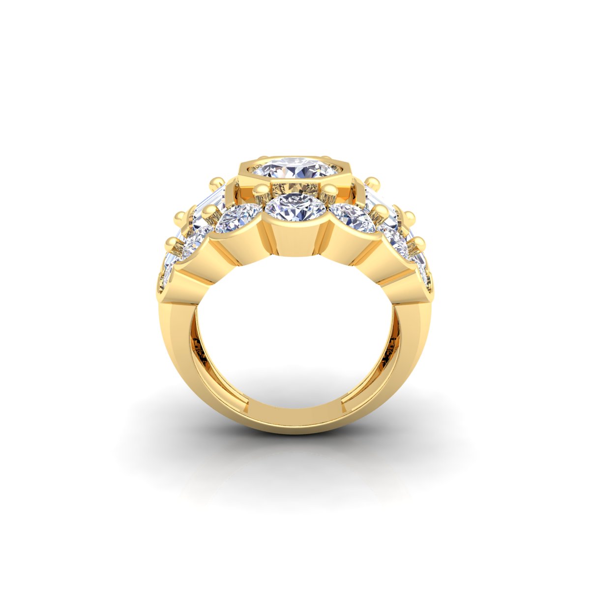 טבעת יוקרתית בעיצוב מרשים במיוחד במרכז הטבעת יש יהלום עגול
