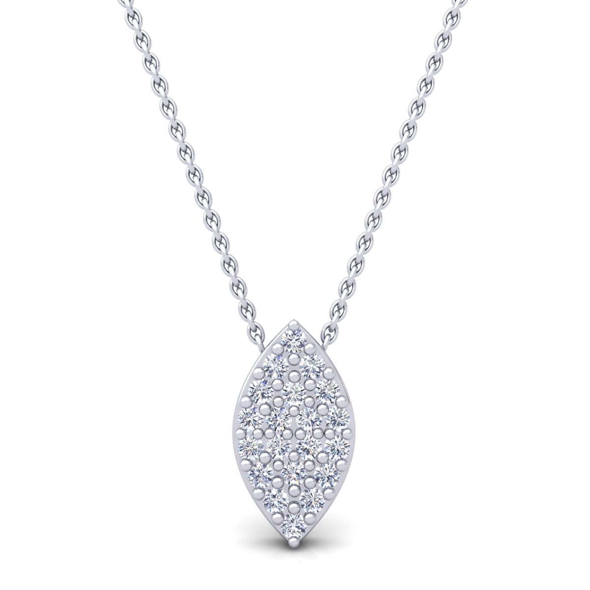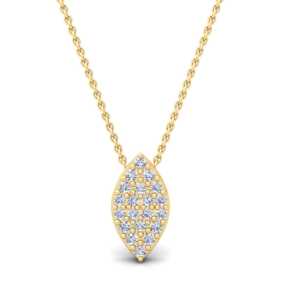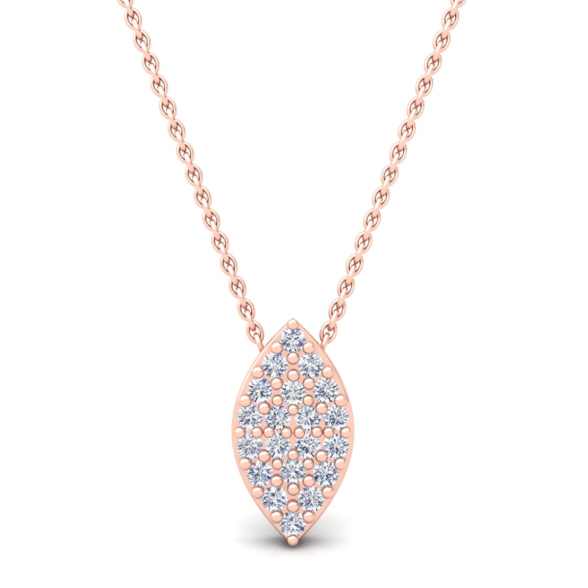 תליון יפייפה בצורת עלה. התליון משובץ ביהלומים קטנים בצפיפות גבוהה, היוצרים דוגמה סימטרית נוצצת.